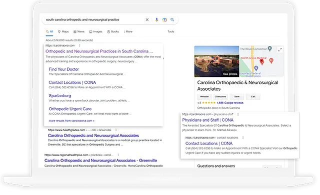 As a leader in South Carolina for orthopedic care, CONA partner with us to focus on growing their organic search traffic and increase rankings for primary surgeries and urgent care services. We developed an orthopedic SEO and content development strategy to create new treatment and conditions pages and strengthen local “near me” searches via location page optimization.
